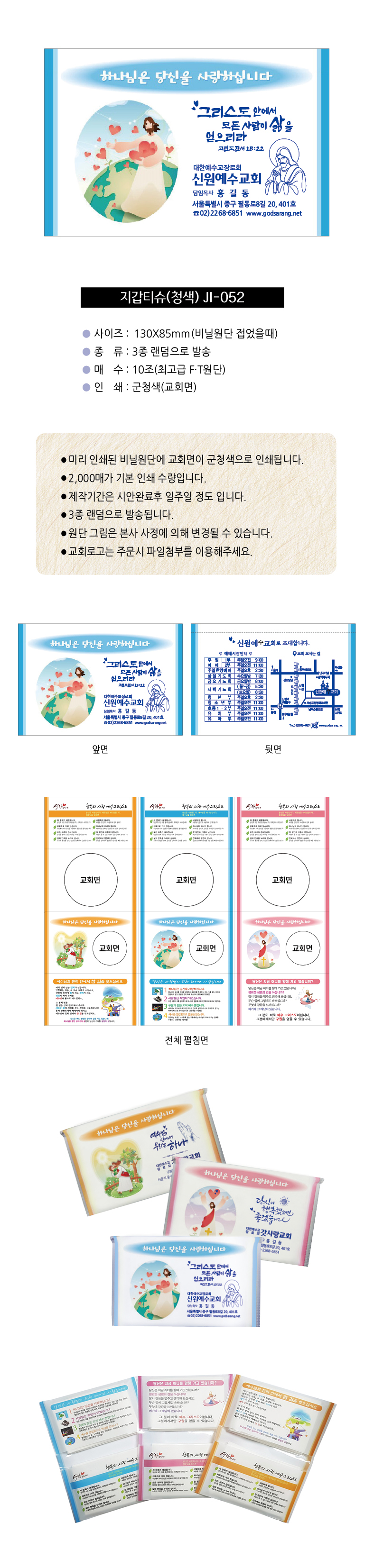 지갑티슈(청색) JI-052 (10조)-2,000매